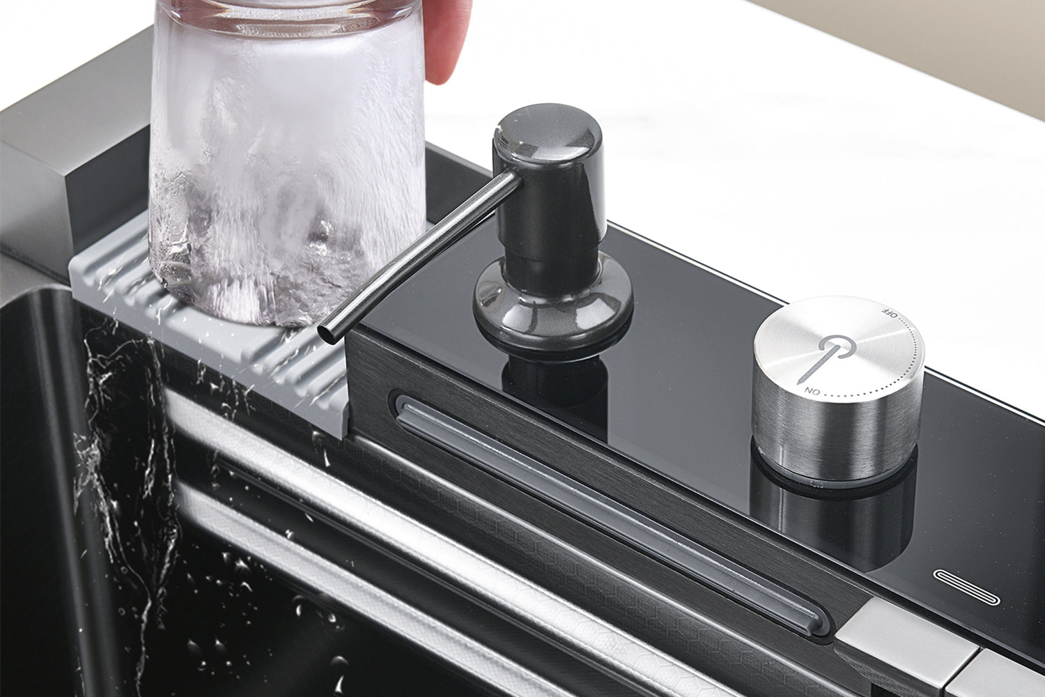 For those who love entertaining, the integrated glass rinser is a game-changer. Quickly rinse your glasses between servings without leaving the sink. Additionally, the built-in soap dispenser ensures that soap is always within reach, making handwashing a breeze.