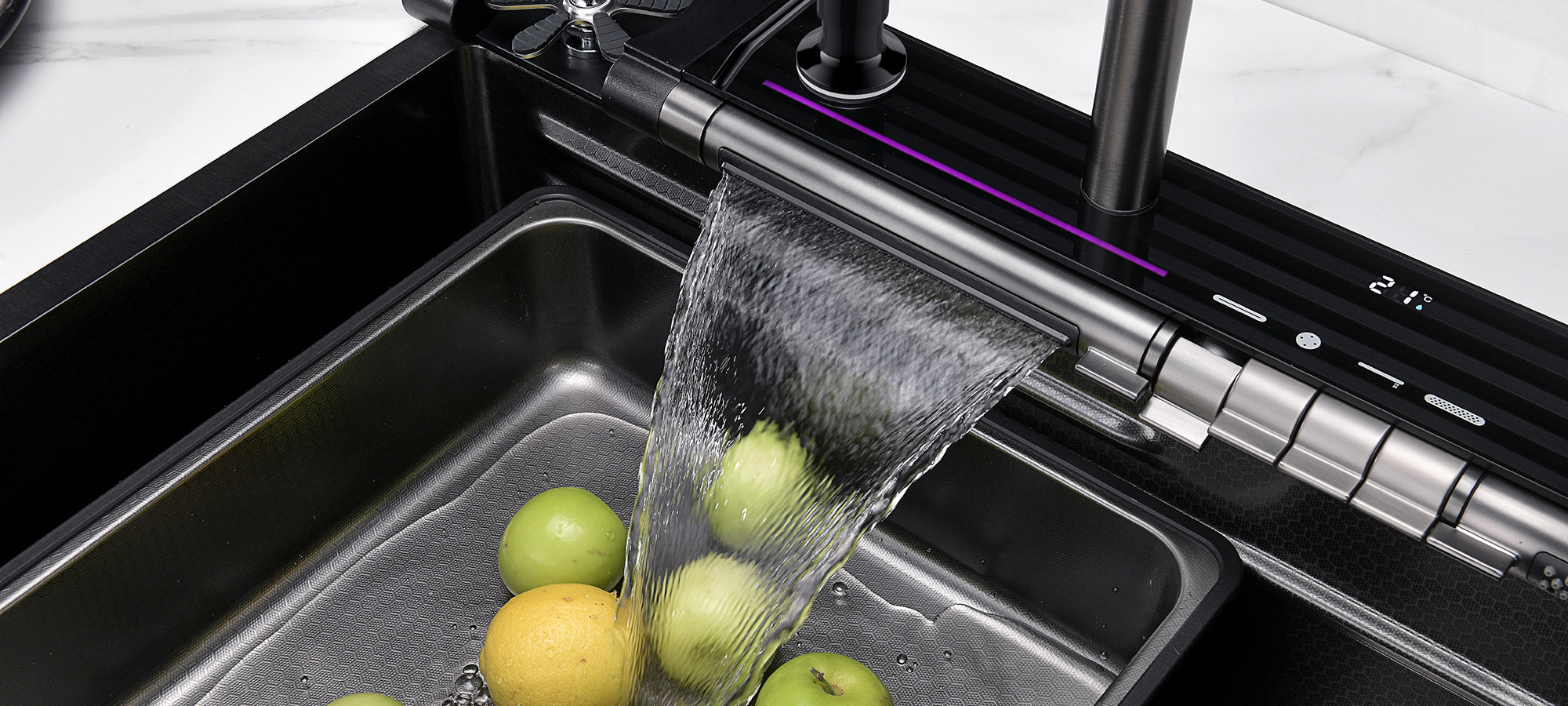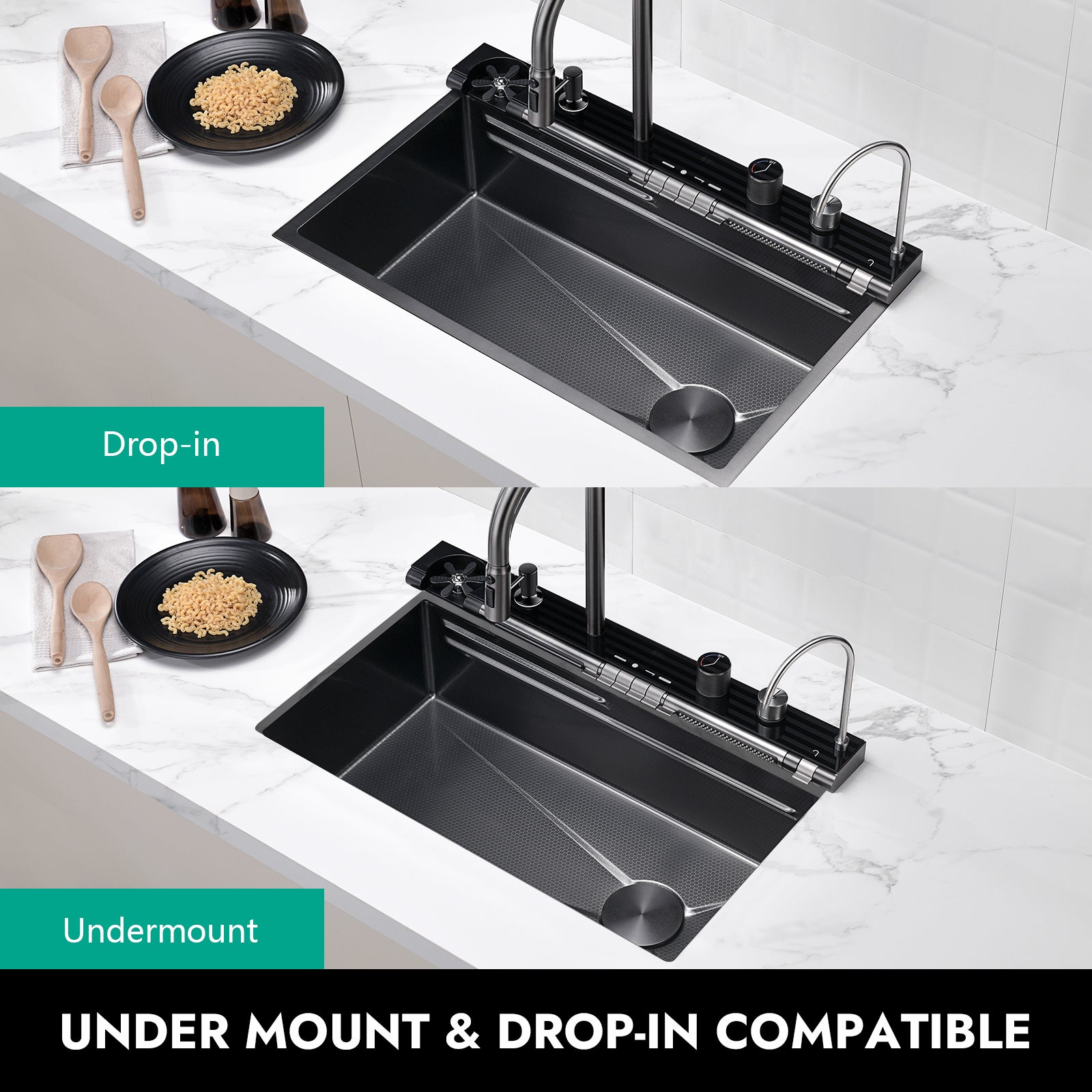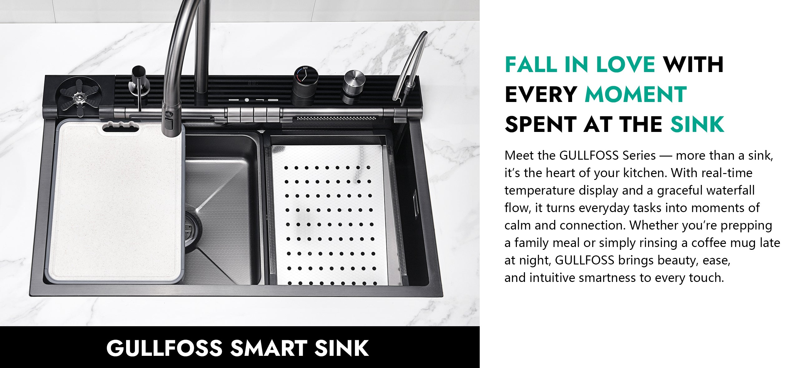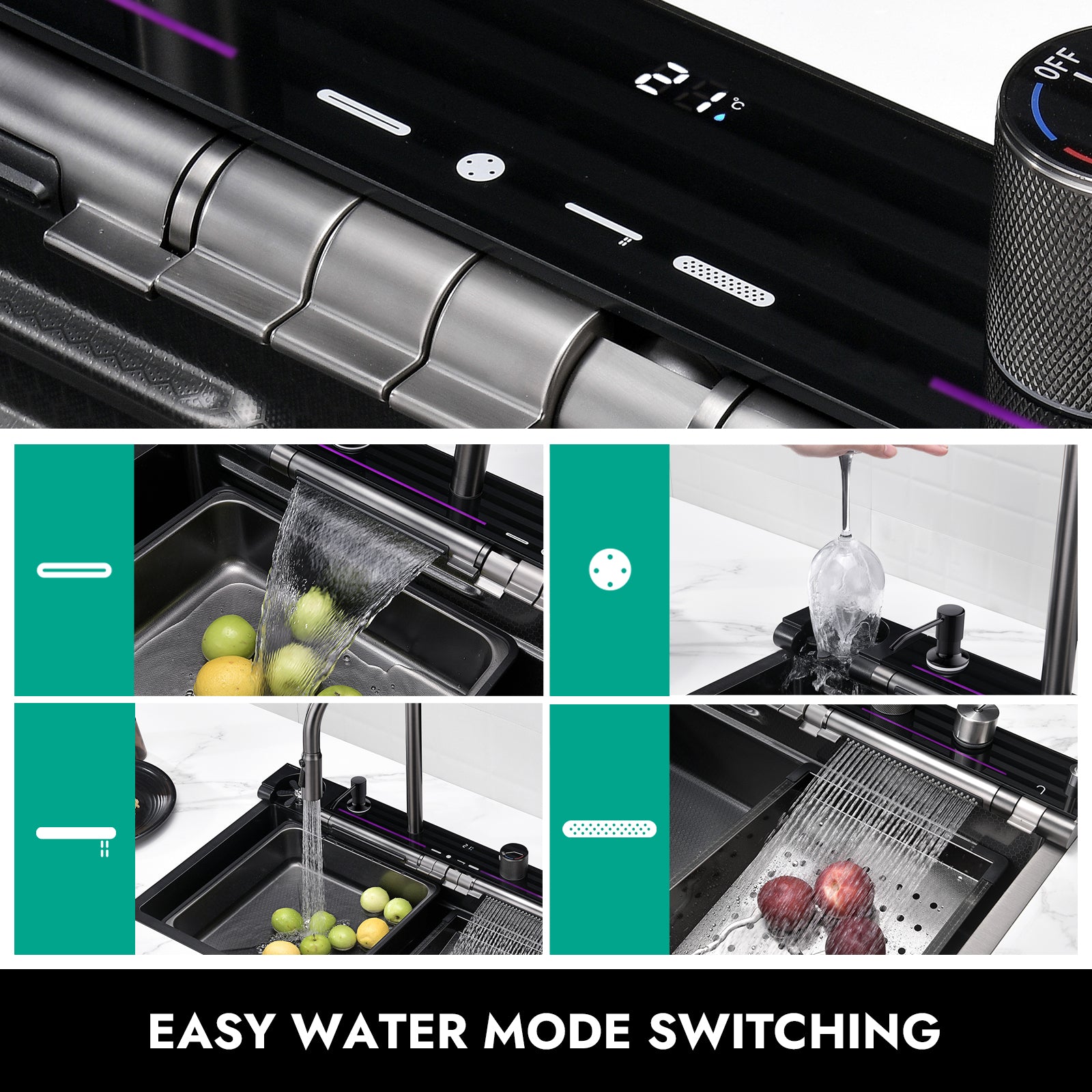 GULLFOSS | Workstation Kitchen Sink Kit with Digital Temperature Display & Lighting Adjustable Waterfall Faucet - SKS2306