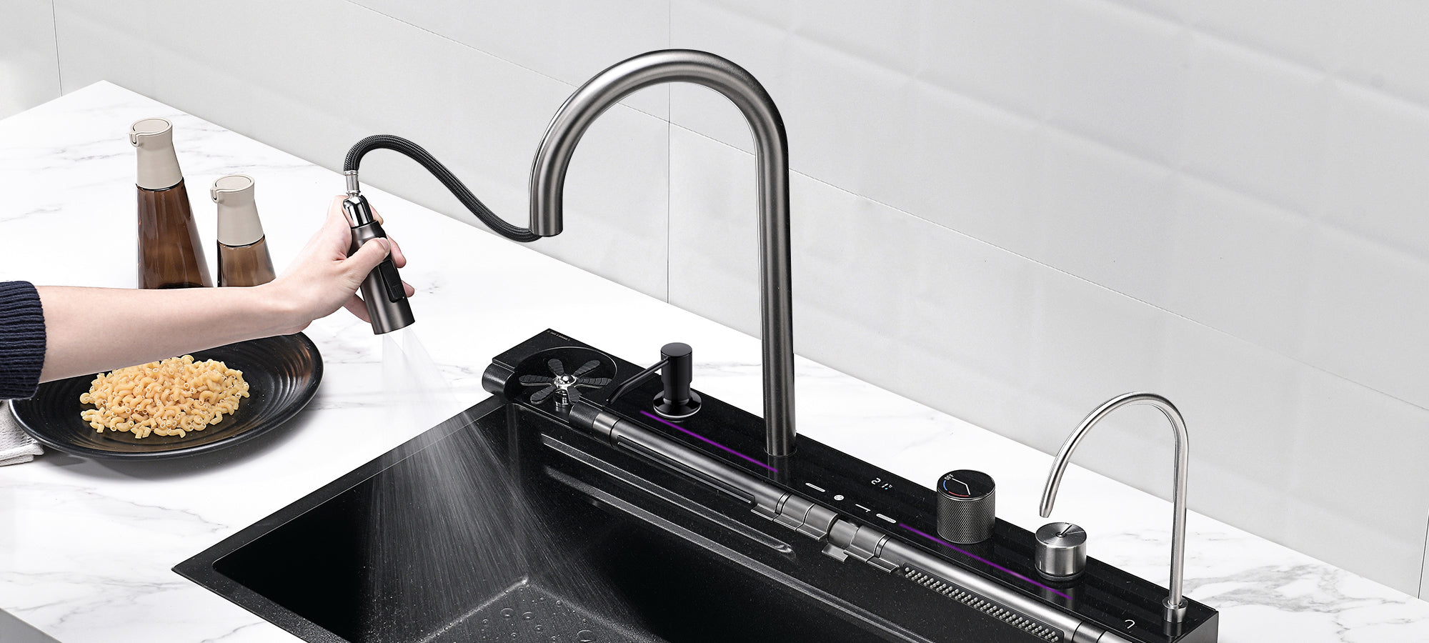 - Multiple Outlet Modes & Waterfall Faucet *1 (With Glass Rinser Function)