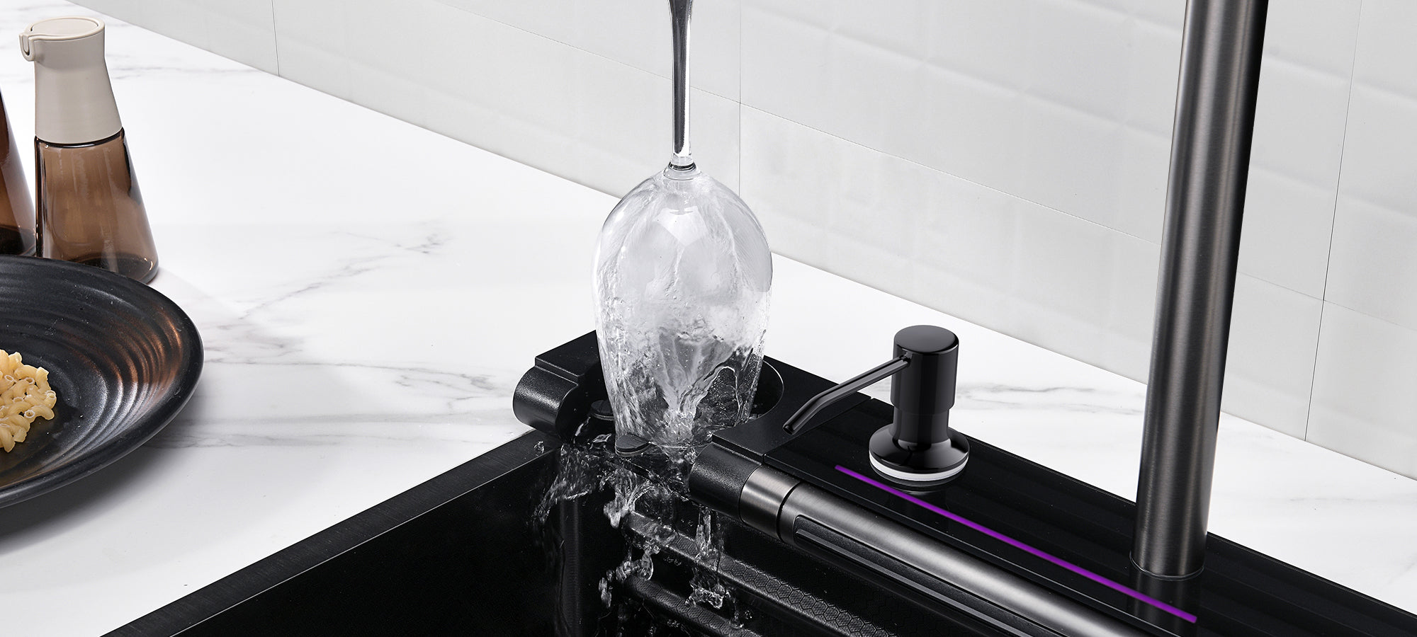 - Added convenience with a glass rinser and soap dispenser during your cleaning routine.