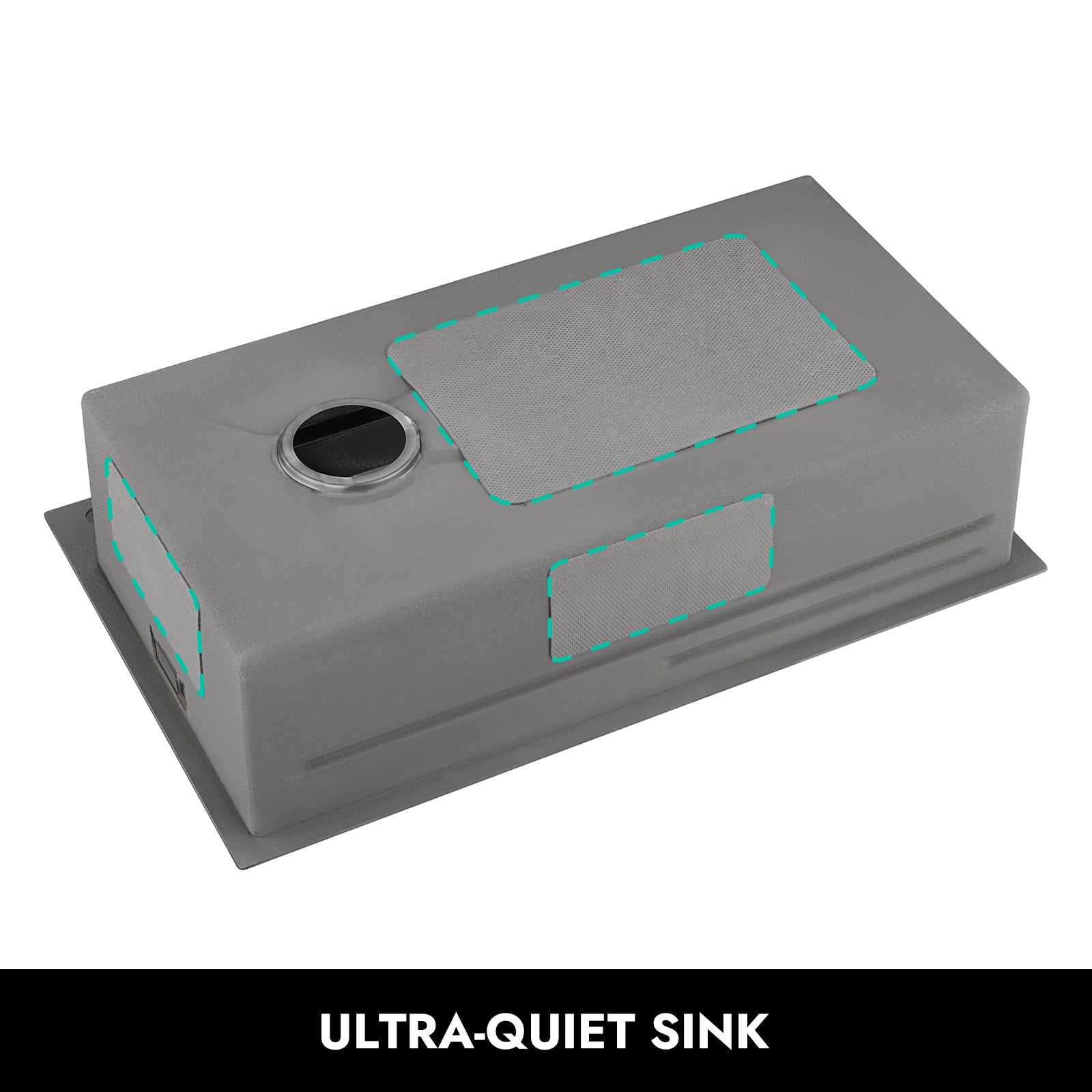 Designed for a quieter kitchen, this sink includes thick sound-absorbing pads and a full anti-condensation coating to reduce noise, vibration, and moisture buildup.